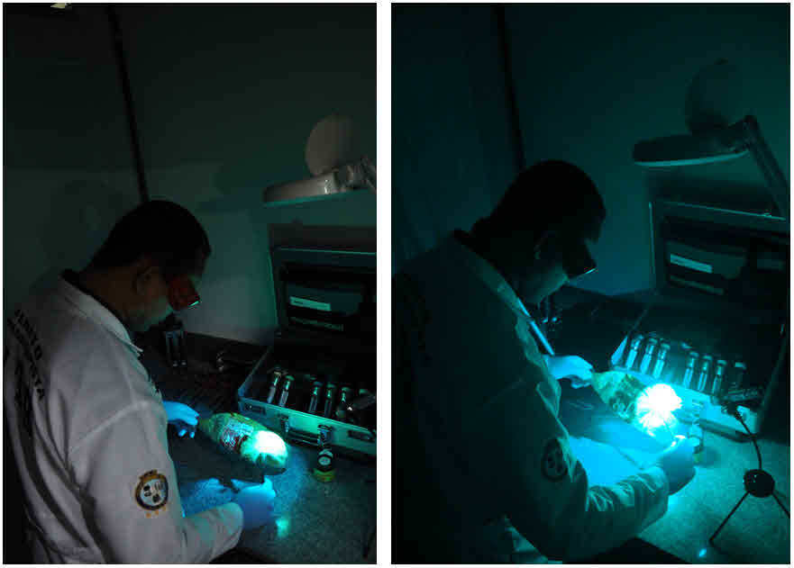 Com o uso de uma maleta com kit de lanternas forenses, o NAP/DHPP iniciou de uma forma mais efetiva os primeiros trabalhos periciais com aplicação de corantes fluorescentes após vaporização com cianoacrilato, bem como pós fluorescentes regulares e magnéticos, mais aplicação de luz forense em diversas superfícies de objetos relacionados com os fatos delituosos apurados pelas Forças Tarefas e Delegacias do DHPP.