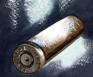 Aplicar-se uma descarga elétrica de 2.500 volts no cartucho. A área corroída onde está a impressão digital, não segura tanta energia quanto o resto do metal.