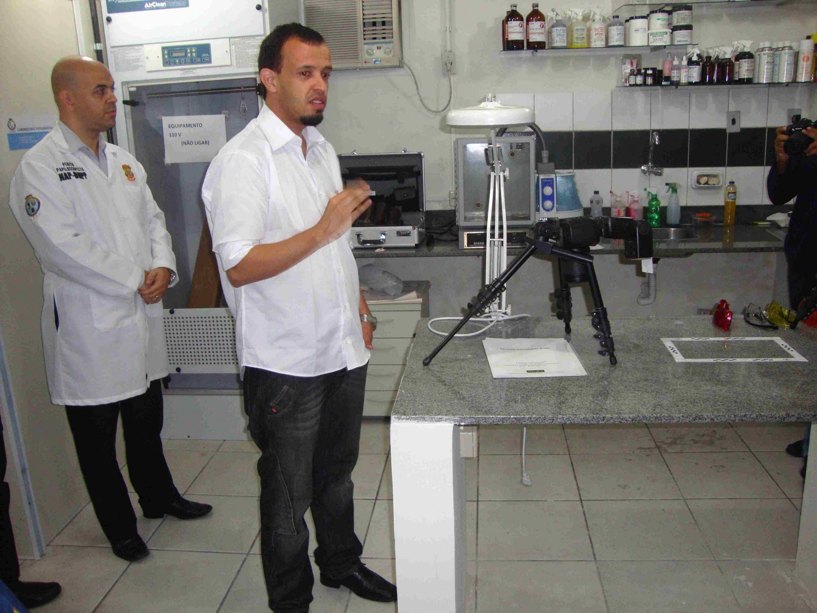 O prossifional escolhido foi o colega Jânio, Perito Papiloscopista, lotado no Laboratório de Papiloscopia Forense do IIDF, especialista em luz forense com mestrado em Física pela Universidade de Brasília.