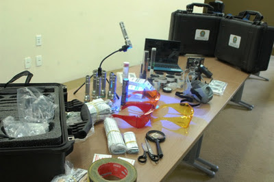 Na oportunidade, todos os Peritos tiveram conhecimentos sobre os equipamentos essenciais para a coleta de impressões papilares e resíduos existentes nos locais de crimes como: materiais para coleta de evidências; kit de luz forense; reagente para detecção de drogas; reagente para revelação de traços de sangue/sangue humano; kit de equipamentos para proteção individual; pós reveladores regulares, magnéticos e fluorescentes, kit mikrosil, aparelho de GPS; paquímetro digital; máquina fotográfica digital; trena eletrônica a laser e netbook com softwares forenses.