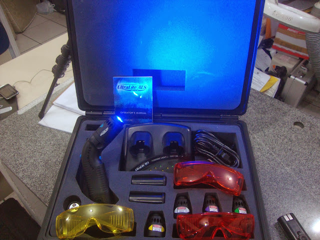 No dia de hoje, pela manhã, foi entregue aos Peritos do NAP/DHPP o Kit de lanterna forense modelo ULTRALITE ALS, resultante do processo licitatório nº 045/2011.