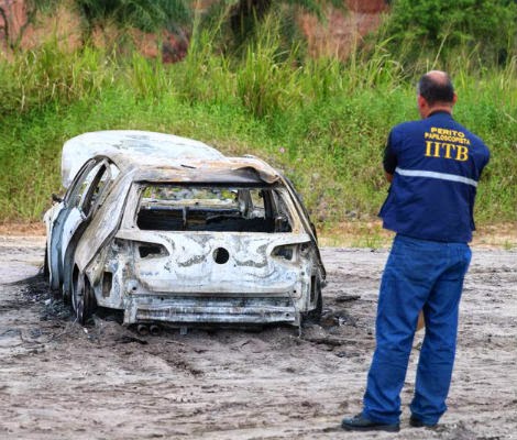 Recife. O veículo estava totalmente queimado, impossibilitando qualquer perícia de natureza papiloscópica, entretanto o Perito Papiloscopista da equipe NAP/IITB/DHPP encontrou uma garrafa plástica vazia e com um forte cheiro de gasolina, que pode ter sido utilizada para incendiar o automóvel. A garrafa plástica se encontrava em uma vegetação próxima ao veículo, sujeita as intempéries climáticas e com sua superfície contorcida devido a ação da alta temperatura das chamas. O recipiente foi coletado para perícias nos laboratórios do IITB e do IC.
