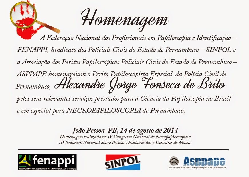 PAPILOSCOPISTA ESPECIAL da Polícia Civil de Pernambuco ALEXANDRE JORGE